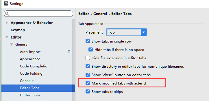 勾选:Mark modified tabls with astrerisk即可对更改的文件进行标记